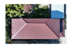 屋根材は遮熱・断熱性が高いダンネツトップ!高耐食のGL鋼板+断熱材で、断熱性・遮音性・強度に優れている屋根材です。 既存カラーベスト屋根の上に重ねて葺くリフォームに対応している屋根材で、圧倒的な軽量性と頑丈な止め付けで地震に強い屋根になります。