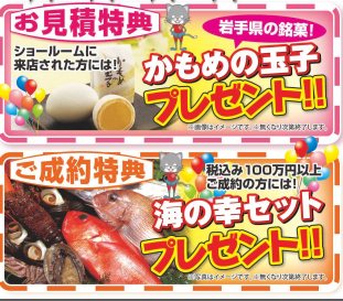 ショールームにご来店いただいてのお見積りの方に、岩手の銘菓「かもめの玉子」をプレゼントします!