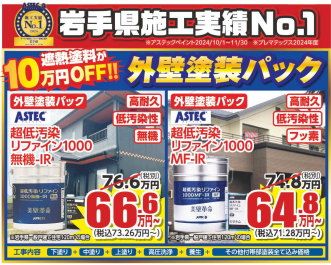 ◆【10万円OFF!外壁塗装パック】超低汚染リファイン1000無機-IRが66.6万円~✨
