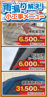 ◆【特得キャンペーン③】雨漏り×小工事の同時施工で5万円引き✨