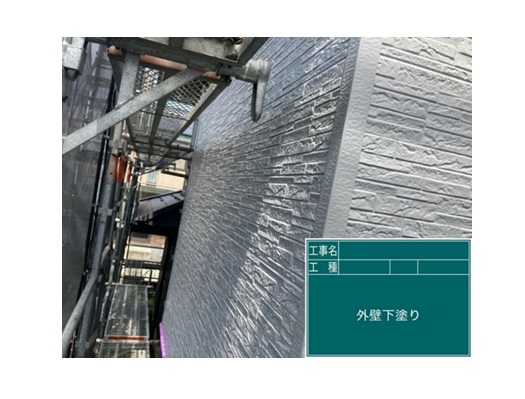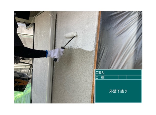 下塗りを塗布します。ベランダ外壁塗装工事① 中塗り