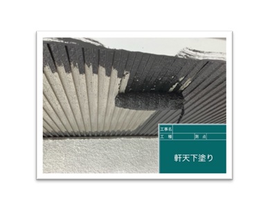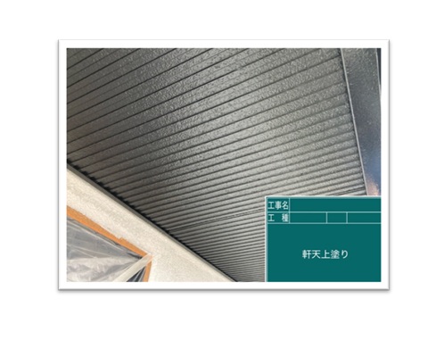 軒天に下塗りを塗布します。外部塗装工事 軒天上塗り