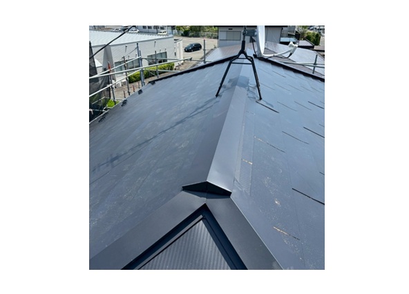 棟板金を設置します。屋根棟工事 棟・降り棟完成