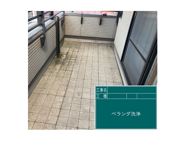 ベランダ床防水工事です。高圧洗浄を行います。ベランダ床防水工事 ウレタン防水・下塗り