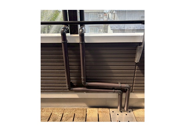 棟・降り棟の完成です。ベランダ外壁塗装工事① 下地調整