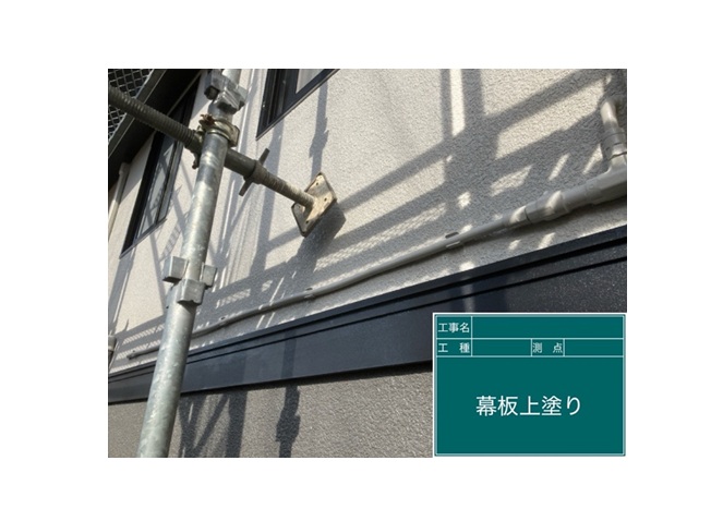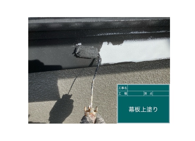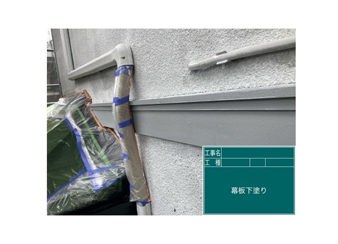 外部塗装工事です。幕板に下塗りを塗布します。外部塗装工事 幕板上塗り