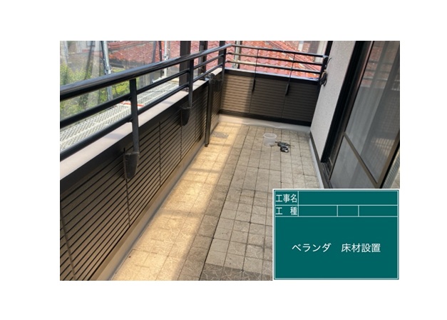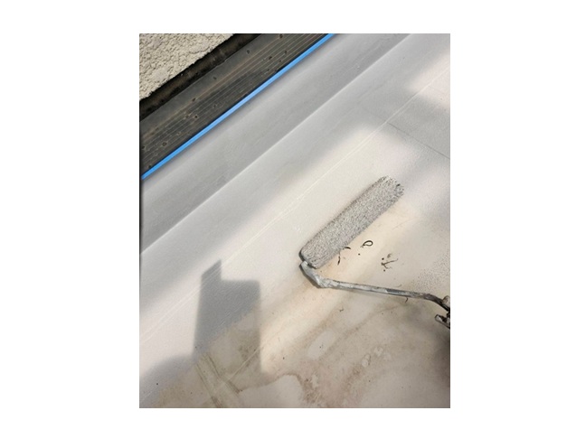 トップコートを塗布します。ベランダ床防水工事 床材設置