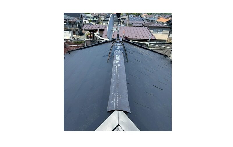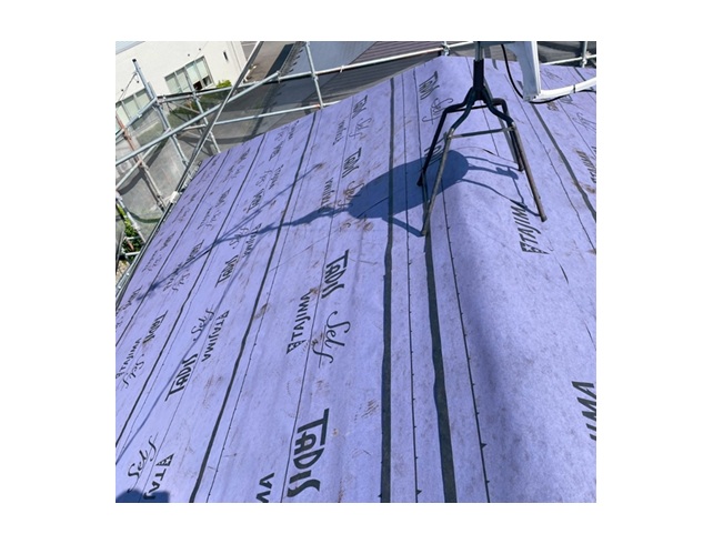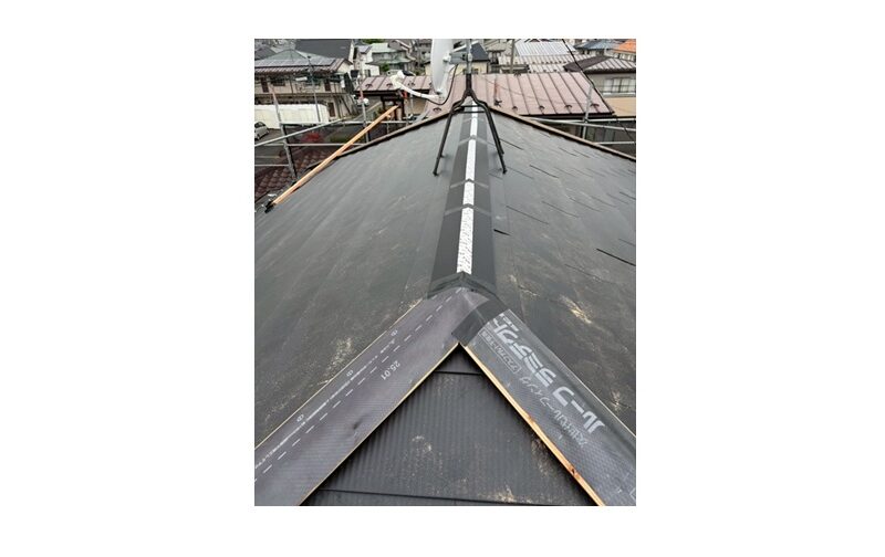 ルーフィング(防水シート)を設置します。屋根棟工事 棟板金