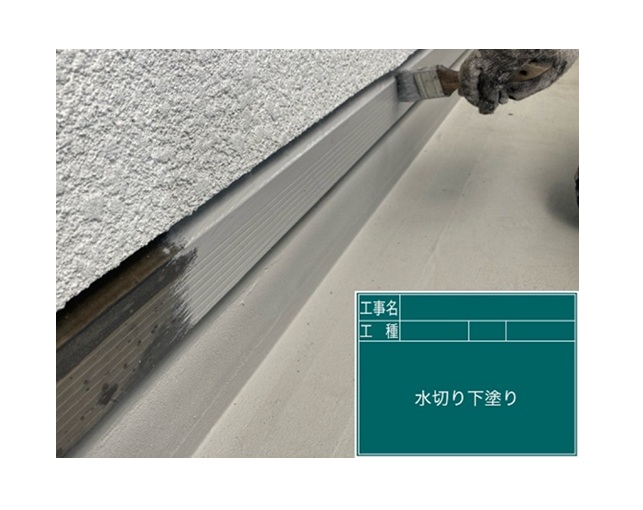 水切りに下塗りを塗布します。外部塗装工事 水切り上塗り