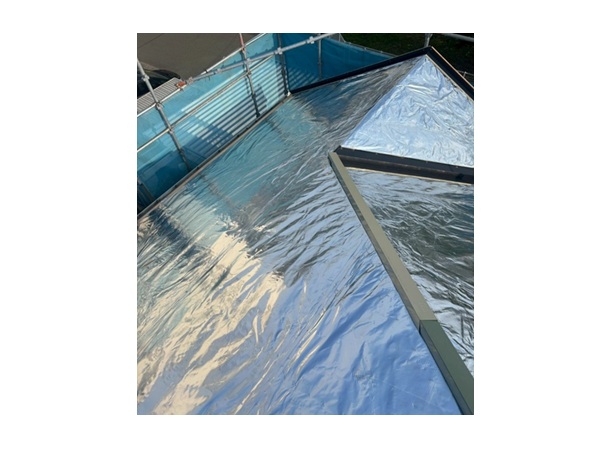 猛暑対策として遮熱シートはオススメです。屋根葺き替え工事 葺き替え施工中