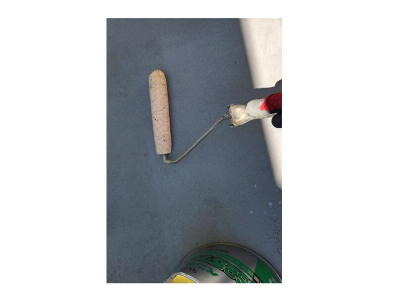 バルコニーウレタン防水工事です。下塗りを塗布します。バルコニーウレタン防水工事 トップコート