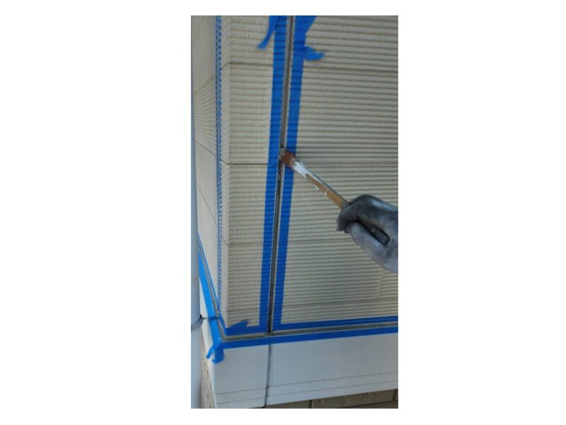 プライマーを塗布することで被着面とコーキングの接着が良くなります。コーキング工事 コーキング充填