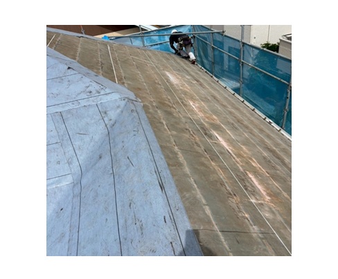 ルーフィング(防水シート)を設置します。屋根葺き替え工事 ルーフィング