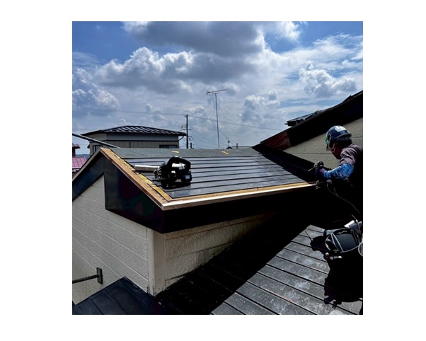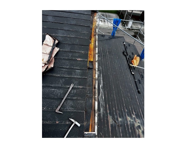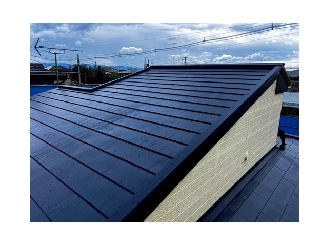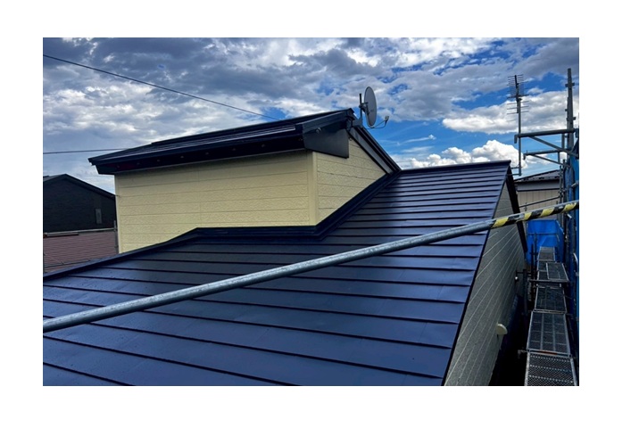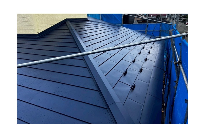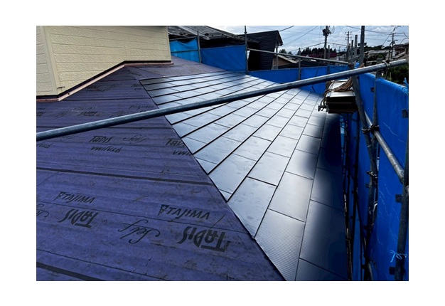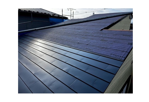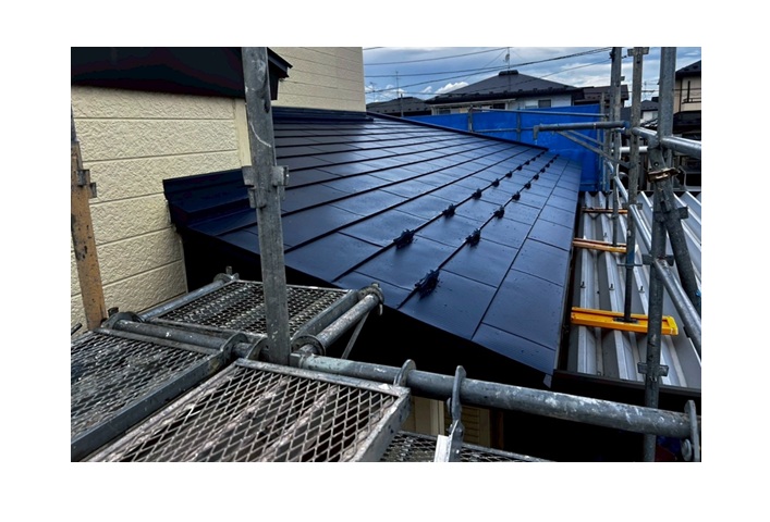 という特徴があります。葺き替えはもちろん、強くて軽量という特徴を生かして今回のような屋根カバー工法にも最適な屋根材です。