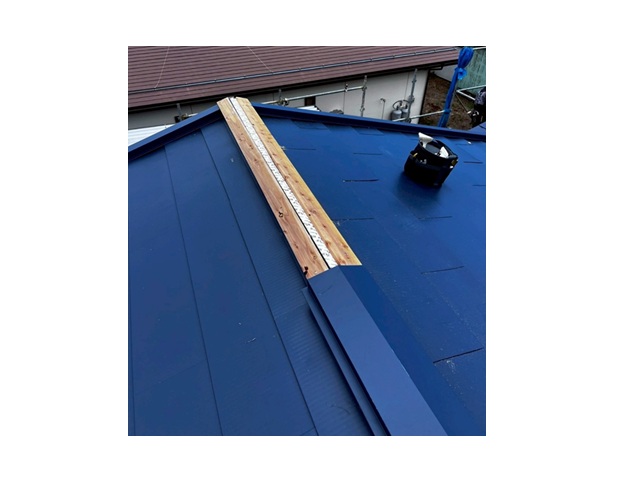 雨漏り侵入箇所の棟を調べたところ、以前、他社での修繕跡がございました。しかし応急処置的な修繕の為、完全には雨漏りは止まっていないという状況でした。そのため、棟下地から交換し抜本的に雨漏りを解決しました。