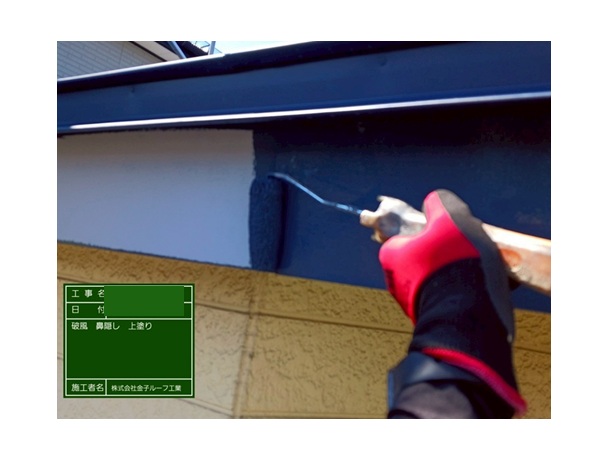 破風・鼻隠しに上塗りを塗布します。