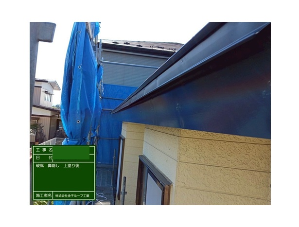 庇屋根及び破風・鼻隠し塗装工事 破風・鼻隠し上塗り後