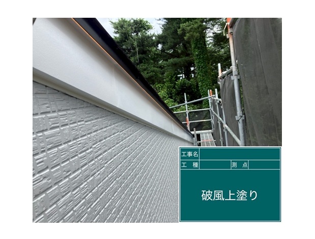 上塗りを塗布して完成です。塗料は「超低汚染リファイン1000Si-IR」を採用しました。