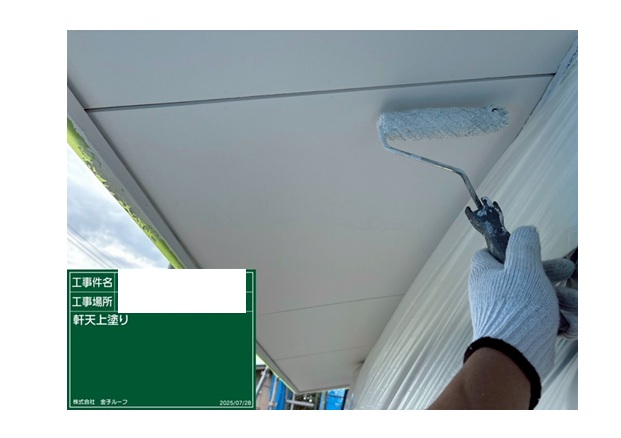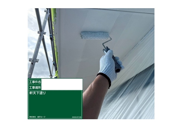 軒天工事 軒天上塗り