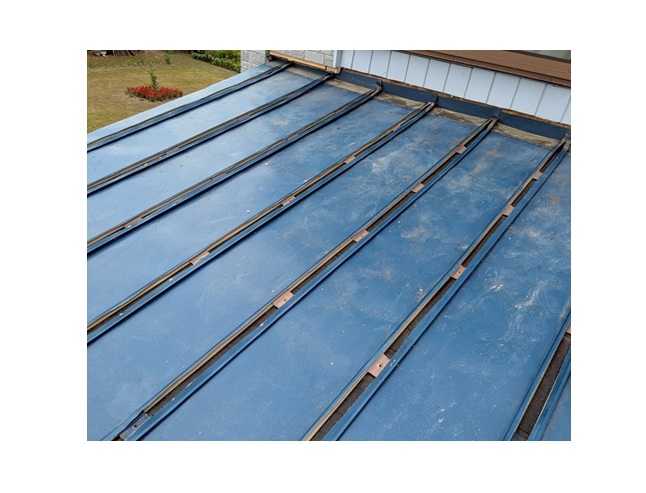 下地の上にルーフィングを設置し、その上に板金を設置して完成です。