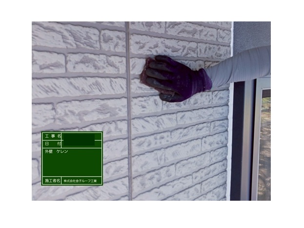 外壁の施工前の状態は、チョーキングが発生し、塗装の膜厚がほぼない状態でした。