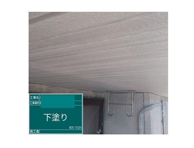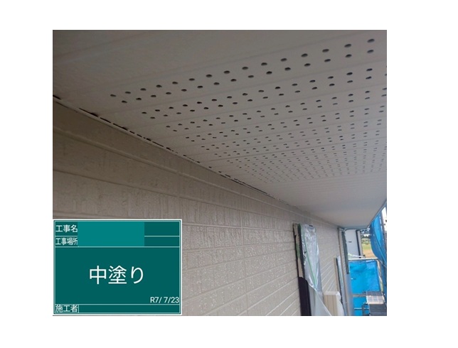 劣化していた軒天を再塗装しました。軒天は雨漏り・すが漏れなど、劣化しやすい箇所です。