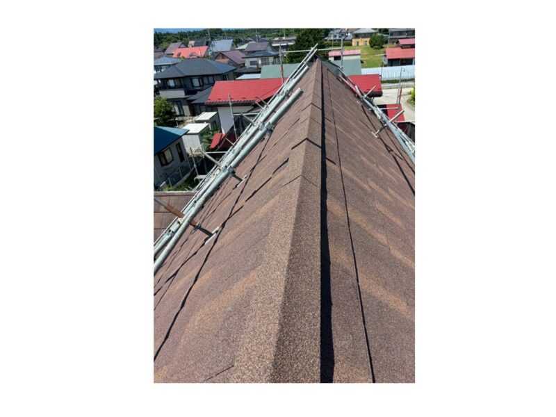 今回の滝沢市の施工事例では、ROOFTG社の一閃(いっせん)という屋根材を使用しています。高性能と美観性を両立したヨーロッパ生まれの屋根材です。岩手県で取り扱いは金子ルーフ工業のみです。一閃は屋根表面の凹凸が積雪を屋根全面でしっかり支えるため、積雪対応力にも優れています。滝沢市で雪に強い屋根材をお探しの方にお勧めです。