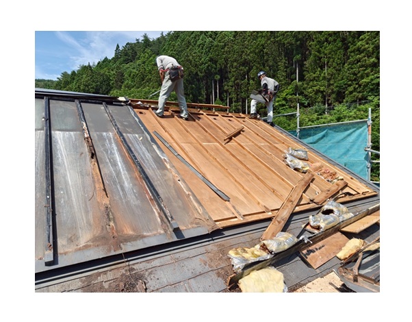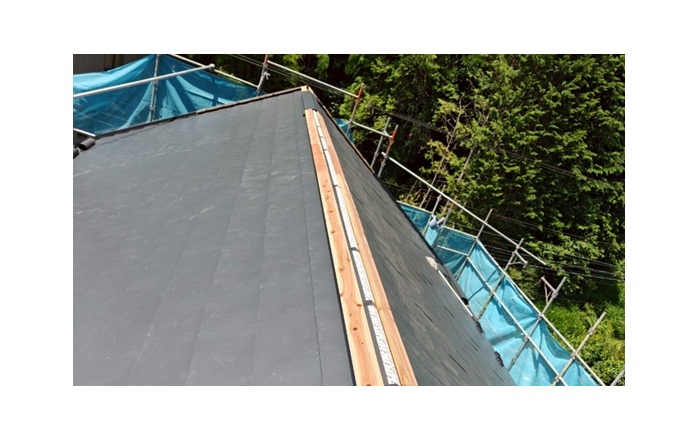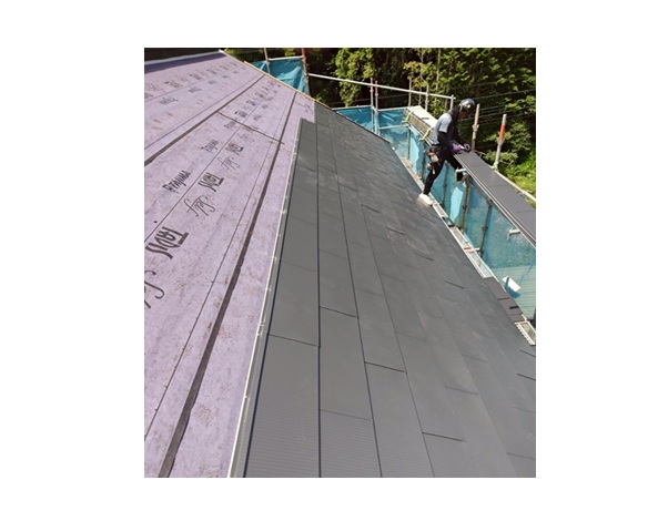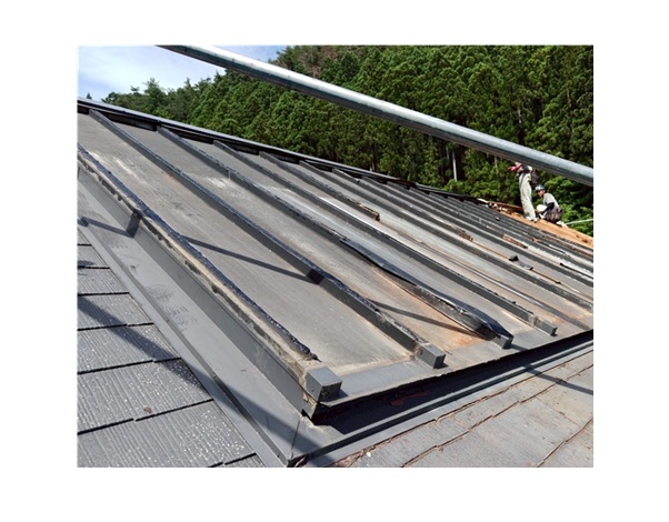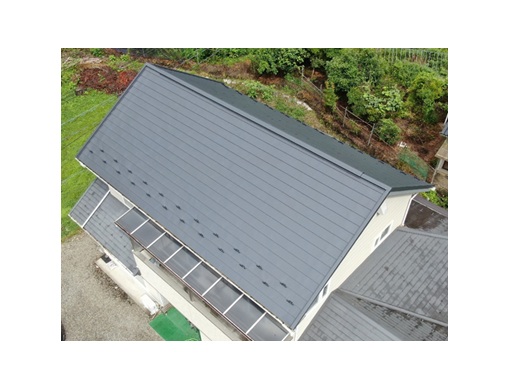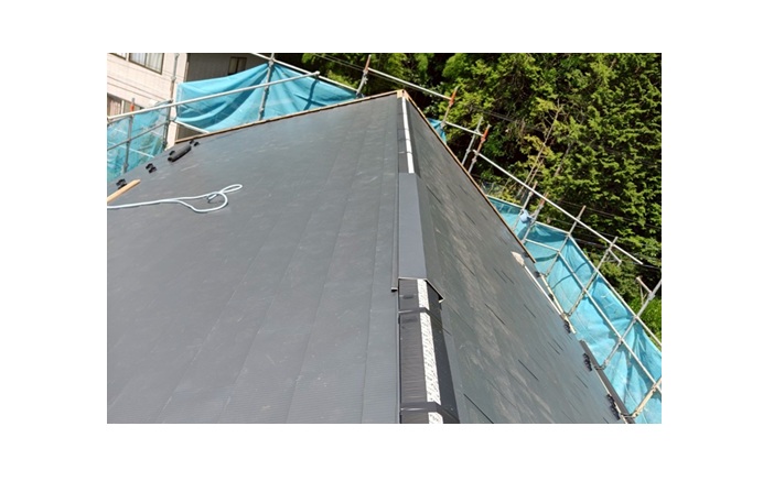 という特徴があります。葺き替えはもちろん、強くて軽量という特徴を生かして今回のような屋根カバー工法にも最適な屋根材です。