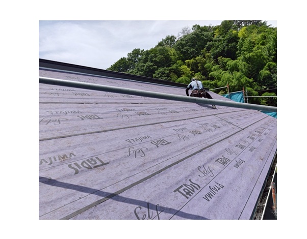 ルーフィング(防水シート)を設置します。