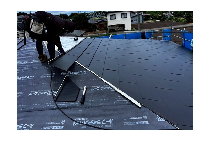 ルーフィングを設置します。