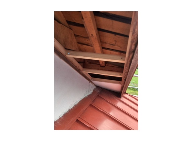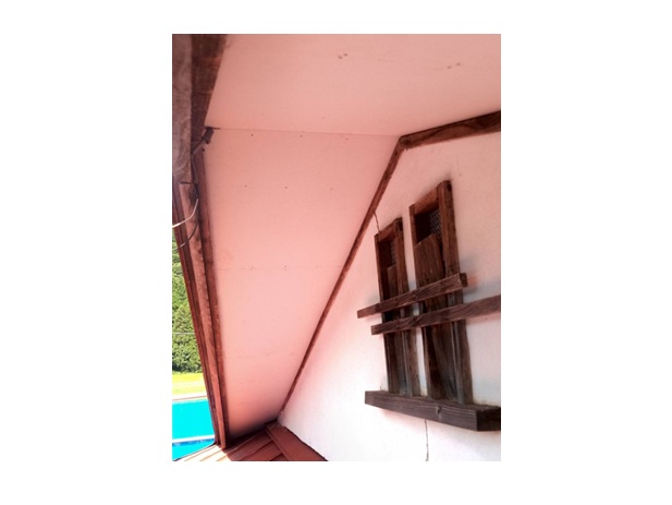 軒天修繕する箇所のベニヤ板が劣化してかなり脆くなっており剥がれてきていました。そこで、ケミカル板を貼り塗装をしました。
