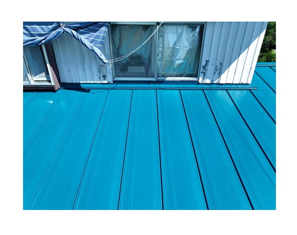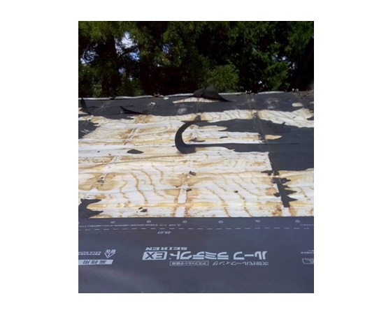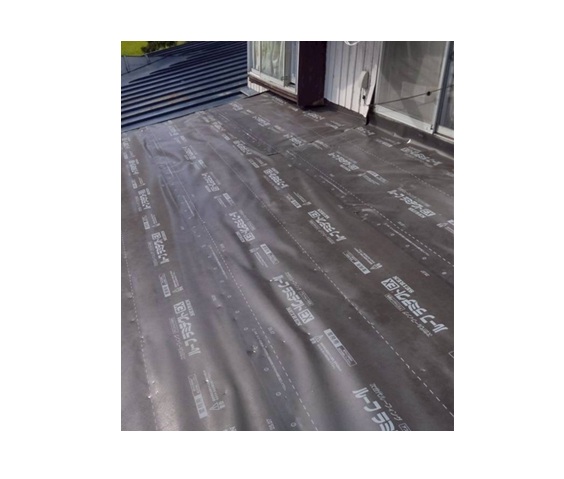屋根葺き替え工事は屋根下地から交換できる唯一の工法です。屋根材は「立平葺き 0.35㎜GL」を採用しました。防水の要・ルーフィングは高品質の「ルーフラミテクトEX」を使用しました。屋根材をかぶせると見えない屋根下地ですが、実は屋根の性能を左右するとても大事なものです。