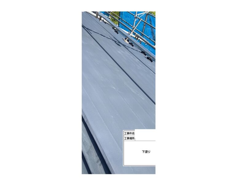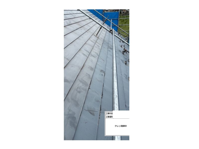 屋根塗装工事です。ケレン(研磨作業)と高圧洗浄を行います。