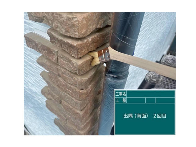 外壁塗装工事 出隅(南面)2回目