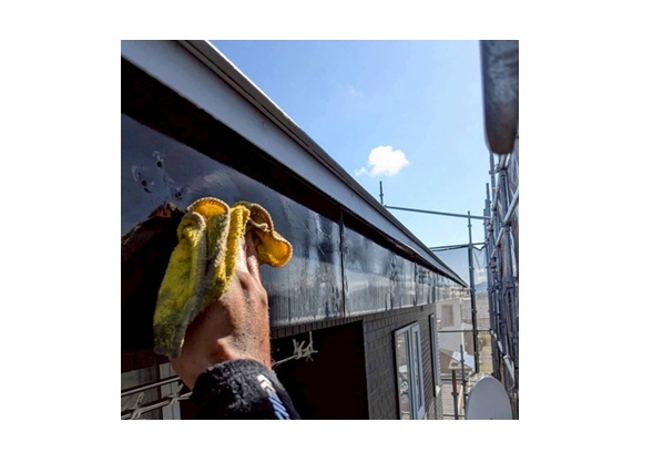 塗装は全体の劣化に加えて、雨どいから水が流れる箇所、外壁と接している箇所の劣化が特に激しい状態でした。ケレンと呼ばれる研磨作業で、このようなサビ、旧塗膜などを丁寧に落として塗料の付着性を高めてから、熟練の屋根職人が三度塗りで仕上げました。