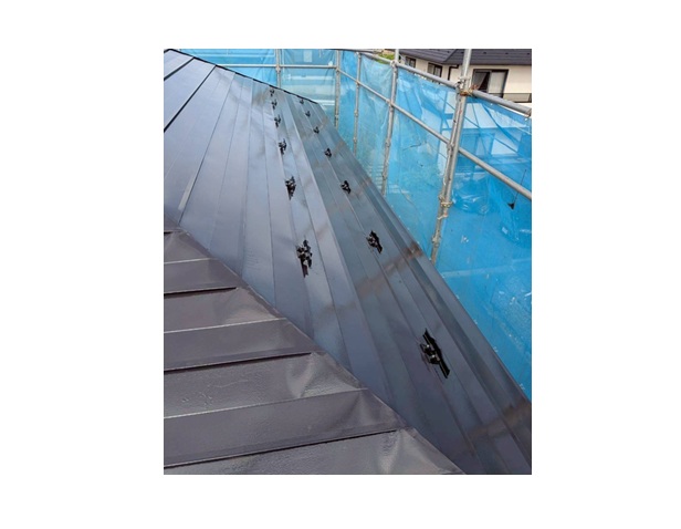塗装剤は「スーパーシャネツサーモSi (アステック)」を採用しました。熟練の屋根職人の手による三度塗りは強さと美しさが違います。年々高まる猛暑の対策としても有効な塗装剤です。