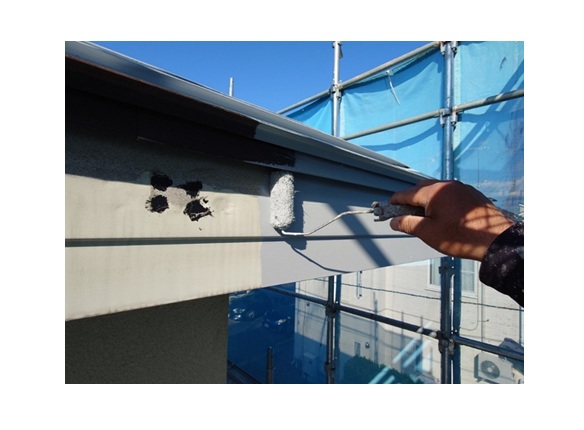 軒天塗装工事 下塗り