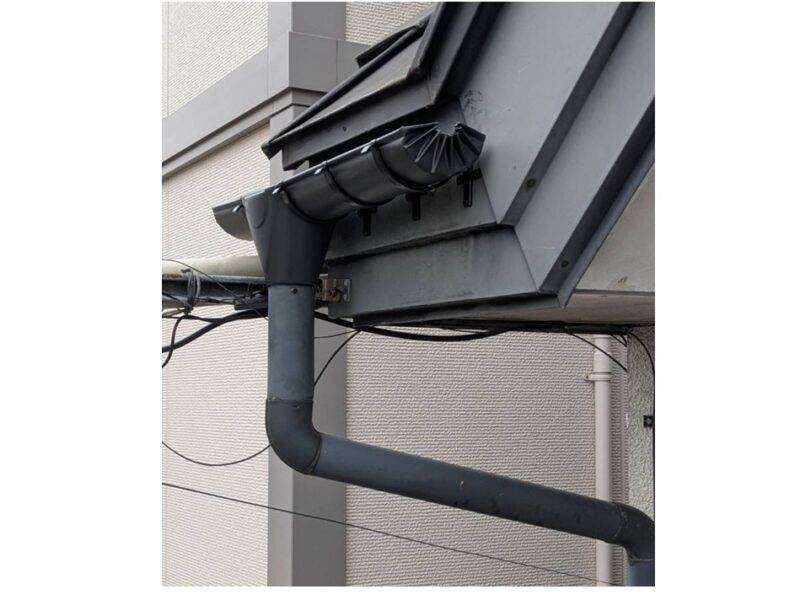 雨樋交換後の様子です。雨樋の掛け替え・軒樋及び集水器の交換を実施しました。