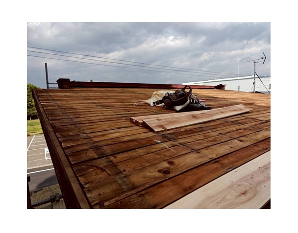 屋根葺き替え工事です。既存屋根を解体して撤去します。